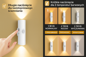 Dzięki automatycznemu czujnikowi ruchu PIR, 3 kolorom światła i magnetycznemu montażowi, zapewni Ci bezpieczeństwo, wygodę i klimat w każdym zakątku domu. 🌙