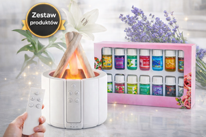 ✨ ZESTAW FLAME AROMA – Dyfuzor LED + 12 Olejków Eterycznych